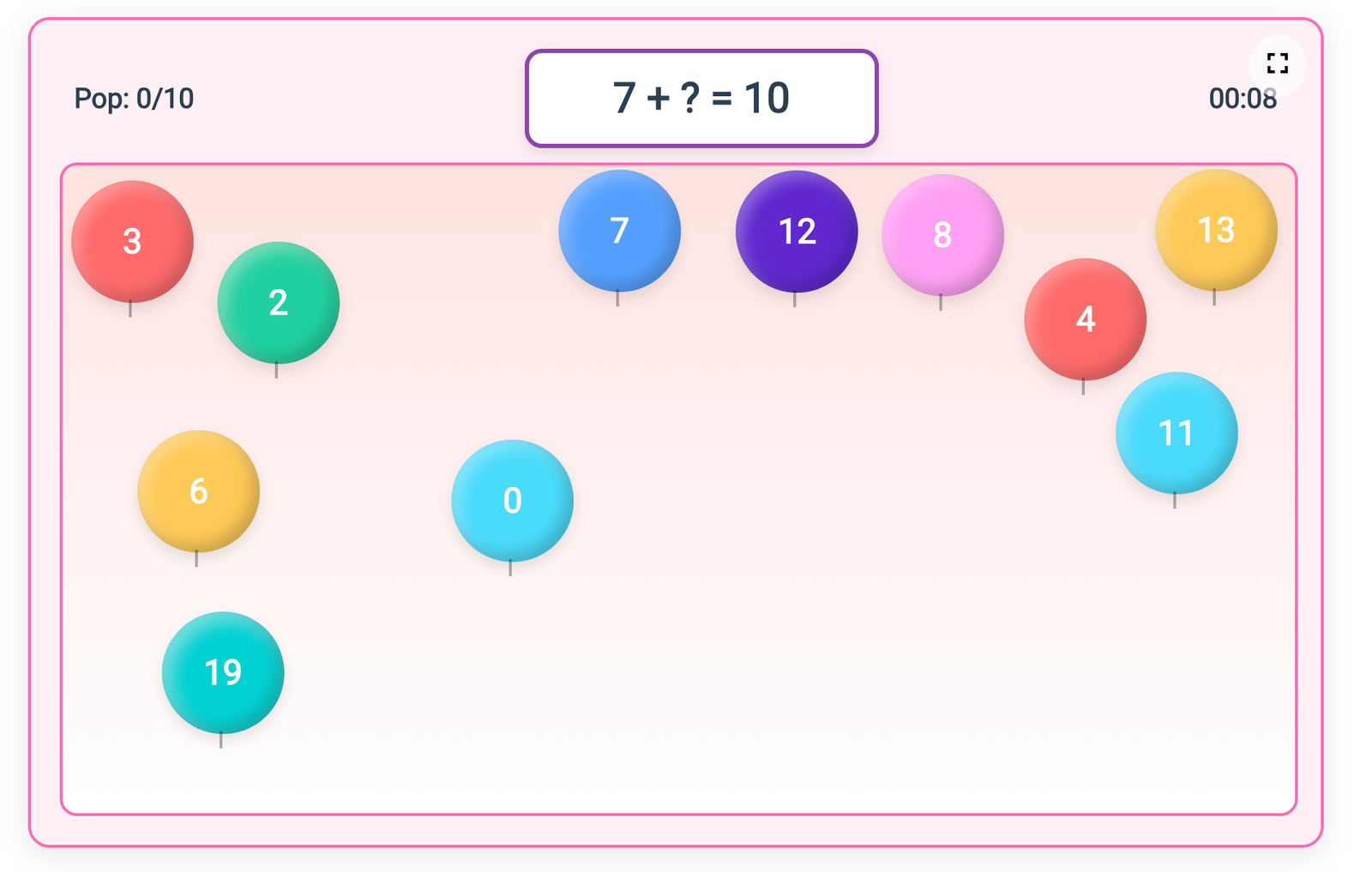 Pop the bubbles that match the target! Great for building quick recall of number facts.