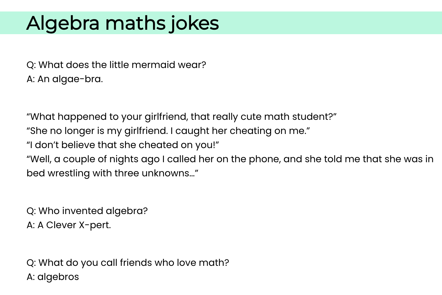 These activities allow consolidation of key skills, prevent students from copying each other (as all the questions are different), make marking and assessing easy for the teacher (as all the answers are the same!), and provide a lovely extra challenge for students as they try to figure out exactly what is going on!
