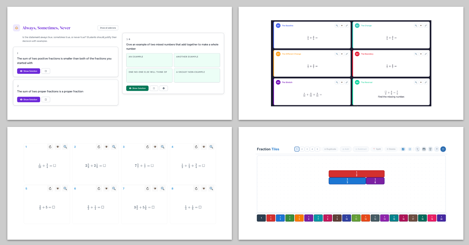 Six-question sets built on variation theory to deepen understanding.